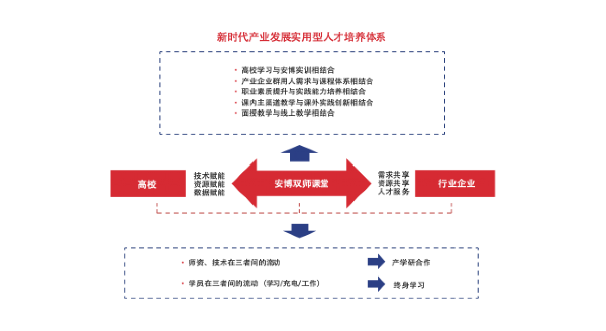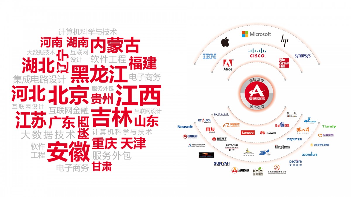 “安博应用技术型人才培养体系与创新模式”通过教育部科技成果鉴定。今天,安博面向人工智能、智能制造、大数据、云计算、集成电路等领域推出系列课程体系,通过自主技术创新推出3D全息教室、智能校园等系列智慧教育物联解决方案,携手合作机构开启新的未来。机构”等荣誉。